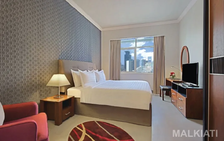 Elevate your stay in the expansive One Bedroom Executive room, offering 77 square meters of sophisticated living space designed for discerning travelers seeking both comfort and city vibrancy. The king-size bed, adorned with ultra-plush linens and positioned to capture stunning cityscape views through expansive windows, serves as the luxurious heart of the bedroom—perfect for unwinding after a day of exploration.