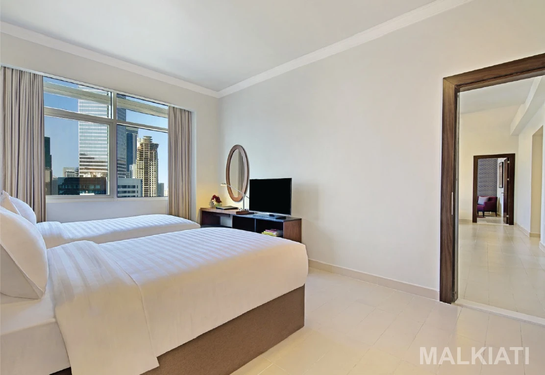 Embrace the pinnacle of spacious luxury in our Two Bedroom Premiere room, a magnificent 108 square meters crafted for families, friends, or extended stays amid vibrant city energy. Each bedroom features a king-size bed enveloped in sumptuous linens, with the master offering prime city views through floor-to-ceiling windows that flood the space with light and skyline inspiration.